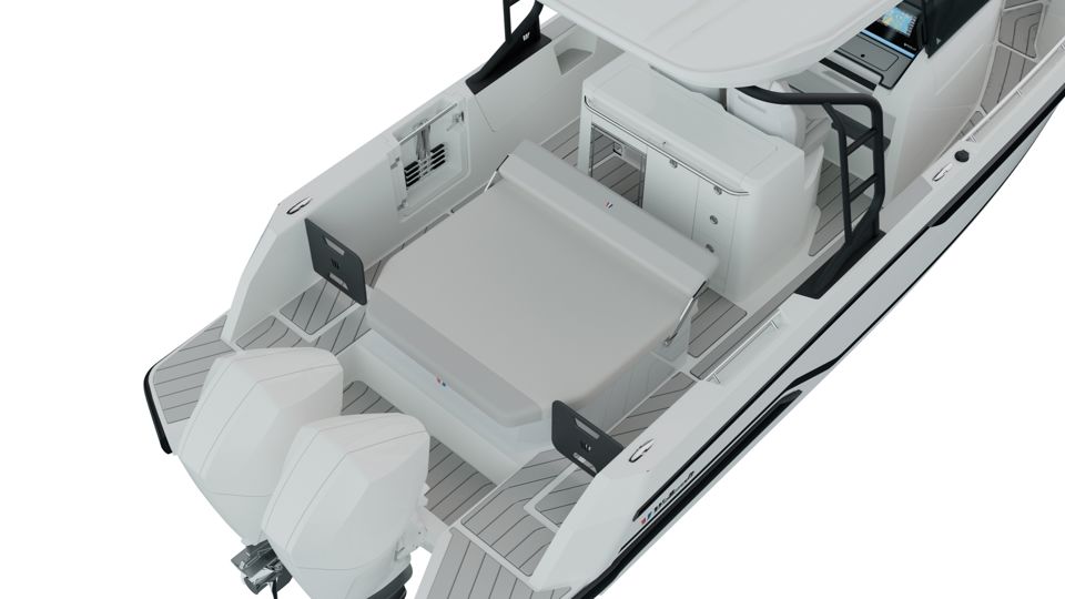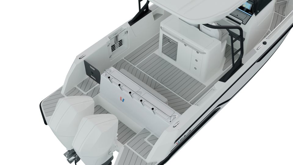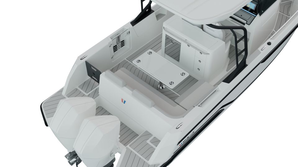 Odprt razpored palube omogoÄa maksimalno izrabo prostora, z vsestranskim kokpitom, integriranimi sedežnimi povrÅ¡inami ter praktiÄnimi reÅ¡itvami, kot so boÄna vrata, teleskopska lestev in veliko prostora za shranjevanje. Ergonomsko oblikovano krmilno mesto nudi odliÄno preglednost in intuitiven nadzor, dodatna oprema pa omogoÄa prilagoditev plovila razliÄnim naÄinom uporabe.
